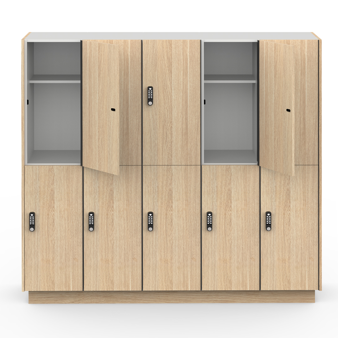 These melamine lockers combine modern style with durability, making them ideal for workplaces, end-of-trip facilities, schools, and gyms. Available in a variety of sizes, door configurations, colours and warm wood finishes, each locker features a full-length piano hinge for added strength and security. Backed by a 10-year warranty, they deliver long-lasting, premium quality.